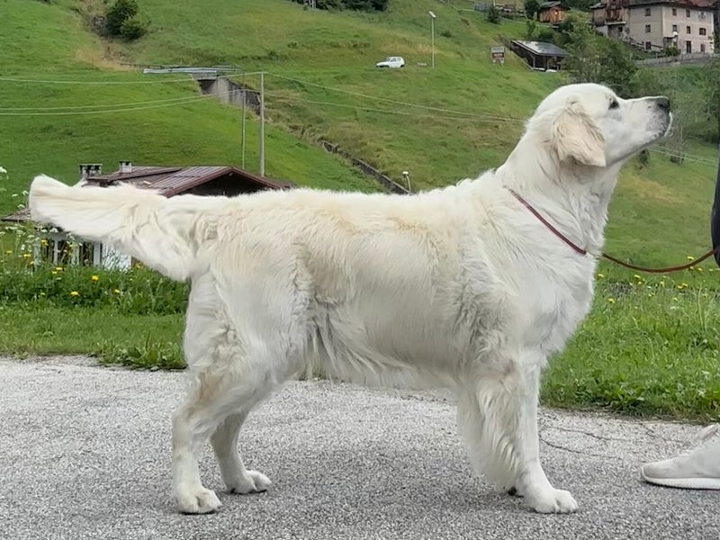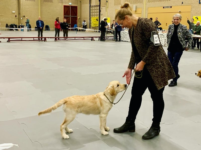 "12 maanden, mooie maat, vrouwelijk totaalbeeld, goed gevormd hoofd met prima oor, oog, gebit, evenredig in hoekingen, goede ribben voor leeftijd, lendenen nog wat lang, mooie topline en staartaanzet, prima beharing, prima gangwerk voor deze leeftijd" - 13 september 2025: Zwolle Outdoor IV, keurmeester: Hans Boelaars (NL), in het keurrapport stond: